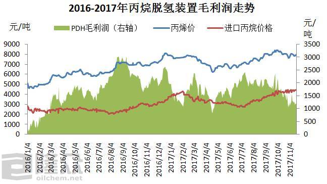 近年來(lái),丙烷脫氫工藝在我國(guó)得以迅速發(fā)展,一方面是丙烯需求旺盛,供應(yīng)有缺口;另一方面裝置利潤(rùn)優(yōu)勢(shì)明顯,是得以迅速發(fā)展的主因。雖然近幾年國(guó)際油價(jià)一路下滑并在低位震蕩,大宗商品行情并不樂(lè)觀,丙烯價(jià)格也有明顯回落,但作為原料氣的丙烷價(jià)格低位,這也保證了丙烷脫氫工藝的利潤(rùn)保持良好,這也是華南地區(qū)也開(kāi)始布局丙烷脫氫項(xiàng)目的重要原因。