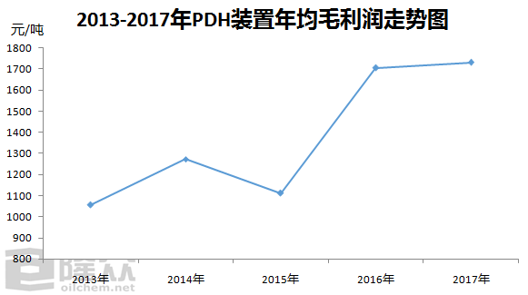 由上圖可見,2016-2017年丙烷脫氫毛利潤表現(xiàn)樂觀,裝置均無虧損情況,尤其在夏季,受原料氣丙烷價格低位,使丙烷脫氫裝置獲利更為理想。華南地區(qū)是國內(nèi)進口氣集中地,而丙烷脫氫裝置,工藝來源于國外,原料氣丙烷也基本依賴進口,裝置在華南投產(chǎn)建設(shè),原料提供方便。目前,華南地區(qū)的進口丙烷資源多作為工業(yè)氣或者搭配丁烷或者搭配當?shù)責拸S氣今日民用市場,均是作為提供熱值的燃料,據(jù)隆眾數(shù)據(jù)監(jiān)控,2016年華南進口毛利潤在257元/噸左右,2017年至今進口毛利潤在194元/噸左右,相比丙烷脫氫裝置利潤優(yōu)勢十分明顯。