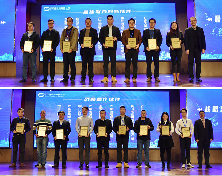 最后,大會向72家合作伙伴頒發(fā)年度戰(zhàn)略合作伙伴、優(yōu)秀客戶、最佳聯(lián)合創(chuàng)新伙伴等獎項。廣物控股集團領(lǐng)導(dǎo)、巨正源領(lǐng)導(dǎo)班子為獲獎客戶頒發(fā)牌匾。
