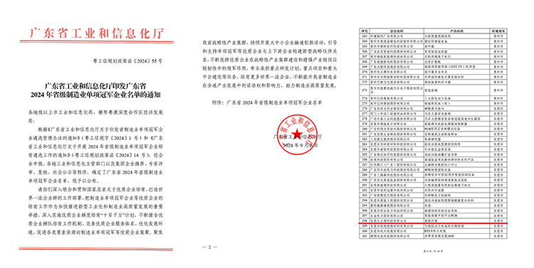 近日,廣東省工業(yè)和信息化廳印發(fā)廣東省2024年省級(jí)制造業(yè)單項(xiàng)冠軍企業(yè)名單。巨正源下屬科技公司憑借領(lǐng)先的技術(shù)創(chuàng)新能力、強(qiáng)大的綜合實(shí)力和卓越的產(chǎn)品質(zhì)量,尤其是自主研發(fā)的“高熔纖維”產(chǎn)品極具技術(shù)先進(jìn)性、質(zhì)量可靠性和產(chǎn)業(yè)帶動(dòng)性等優(yōu)勢(shì),成功獲得“廣東省級(jí)制造業(yè)單項(xiàng)冠軍企業(yè)”稱號(hào)。
