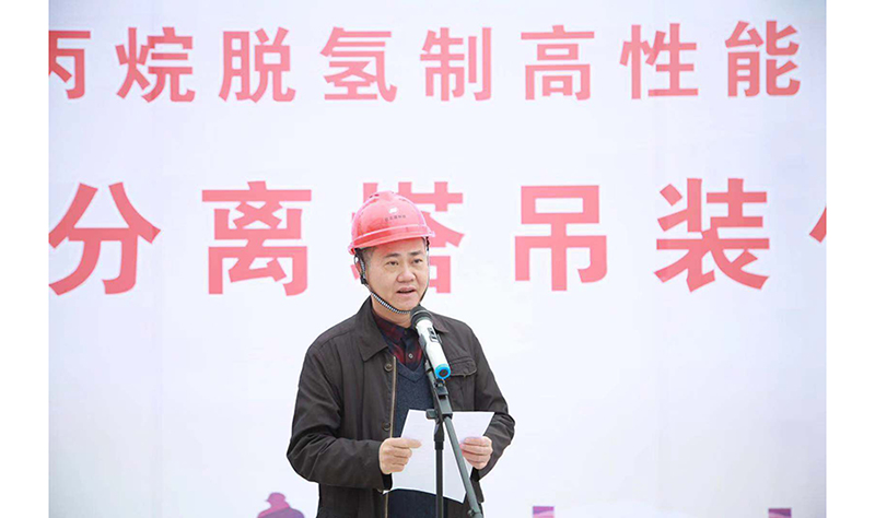 廣物控股集團林浩鈞總經理、羅榮光副總經理,巨正源股份曾一平董事長、王立貴總裁,東莞市、沙田鎮(zhèn)政府及市安監(jiān)局、港航局有關領導,項目設計、設備供應、現(xiàn)場施工、監(jiān)理單位領導代表,銀行金融單位領導代表,周邊企業(yè)嘉賓及公司員工近300人參加產品分離塔吊裝儀式,共同見證了丙烷脫氫項目建設大會戰(zhàn)取得的又一重大成果!