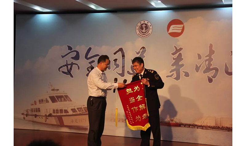 巨正源公司和東莞沙田海事處以黨建共建搭橋,充分發(fā)揮海事部門“紅色引領(lǐng)、藍色服務(wù)”作用,在巨正源大件設(shè)備運輸、鴻源碼頭液態(tài)烴改建工程以及碼頭推行“三制管理”等方面取得了一定的成果。為了表達對東莞海事局、沙田海事處誠摯的謝意和鑒證一份親清正德的政商關(guān)系,曾一平董事長代表公司向沙田海事處贈送了“為企解難 擔(dān)當作為”的錦旗,并表示將努力提升黨建共建工作的成效,進一步促進企業(yè)的安全發(fā)展、和諧發(fā)展。