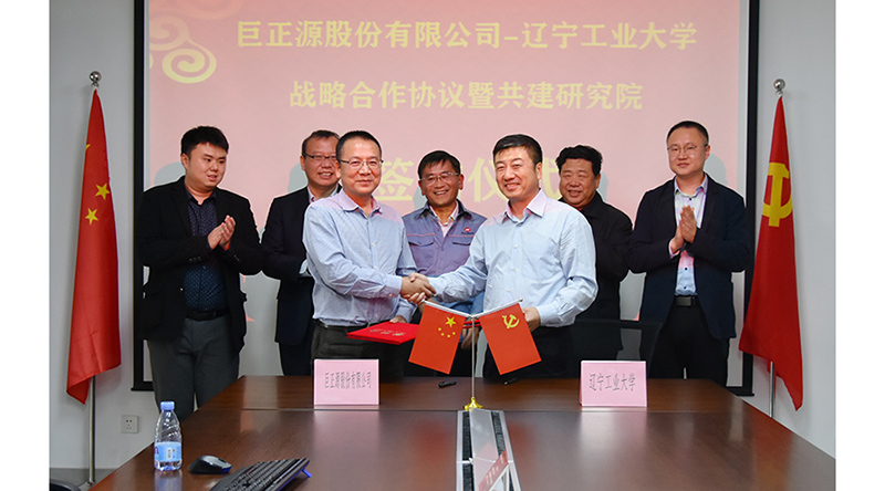 最后,巨正源公司王立貴總裁與遼寧工業(yè)大學(xué)劉春成書記代表雙方共同簽訂了戰(zhàn)略合作和共建研究院協(xié)議書。