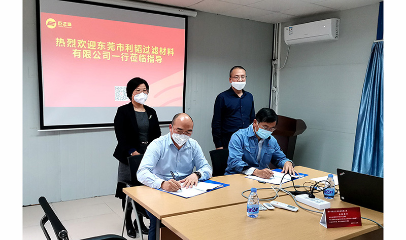 3月18日,東莞市利韜過濾材料有限公司董事長顏一旭一行蒞臨巨正源科技進行業(yè)務交流。巨正源科技公司董事長王立貴、總經(jīng)理李漢初予以熱情接待,雙方深入探討開發(fā)各種過濾用的無紡布、熔噴布等聚丙烯專用料,形成穩(wěn)定的聚丙烯生產(chǎn)、加工產(chǎn)業(yè)鏈良好合作關系,并簽署了《戰(zhàn)略合作協(xié)議書》。