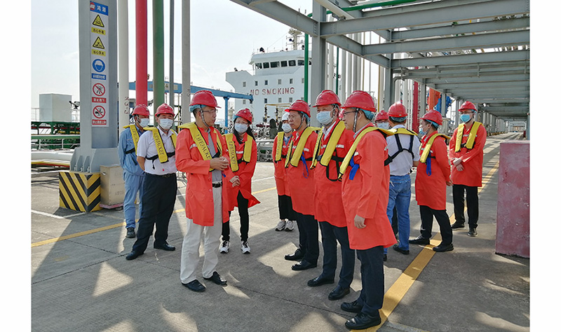 駱貴全一行先后參觀了巨正源公司旗下的盛源油庫、鴻源碼頭、聚丙烯項目一期生產(chǎn)現(xiàn)場和二期建設現(xiàn)場,詳細了解油庫和碼頭的運作情況、聚丙烯項目一期生產(chǎn)運營和二期工程建設情況。