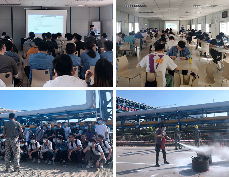 此次培訓(xùn)為期兩周,課程內(nèi)容包括公司規(guī)章制度、企業(yè)文化、紀律考評、廉潔教育、聚丙烯項目介紹、各專業(yè)工藝簡介、職業(yè)衛(wèi)生、安全管理基本知識、環(huán)境保護和清潔生產(chǎn)、行為安全管理、職防與安裝設(shè)備使用、消防知識與應(yīng)急處置、滅火演習(xí)等。