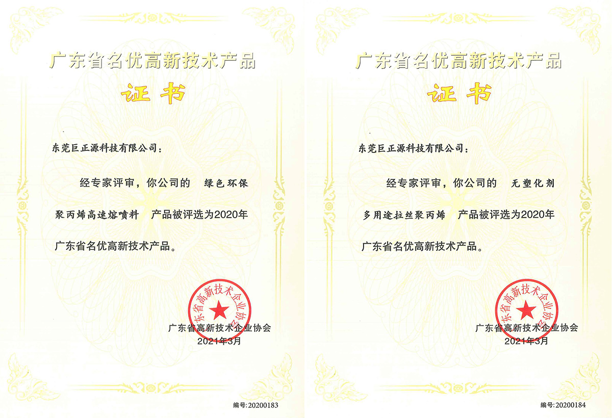 近日,巨正源科技公司自主研發(fā)、生產(chǎn)的“綠色環(huán)保聚丙烯高速熔噴料”、“無塑化劑多用途拉絲聚丙烯”兩類產(chǎn)品榮獲“廣東省名優(yōu)高新技術(shù)產(chǎn)品”稱號,標(biāo)志著巨正源的高分子材料研發(fā)取得新成效、邁上新臺(tái)階。