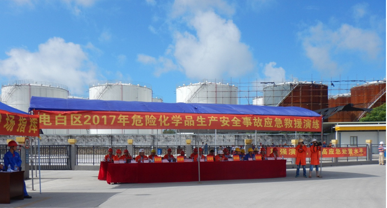 2017年6月29日,按照茂名市港航管理局和電白區(qū)政府布署,由新源茂名承辦的大型跨區(qū)安全生產(chǎn)綜合應(yīng)急演練在新源油庫舉行。
