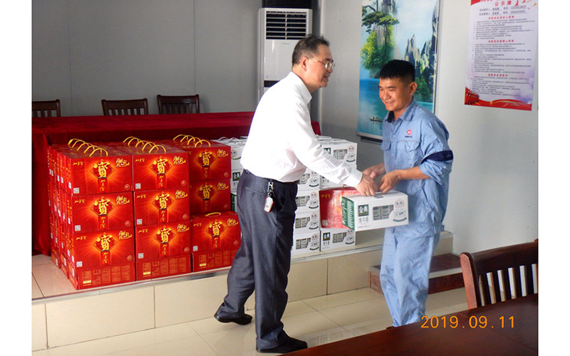 曾一平董事長親切慰問分公司員工,并為員工發(fā)放慰問品。