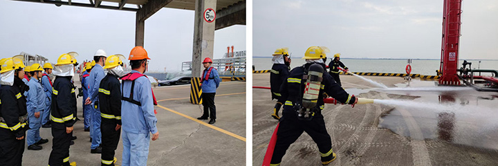 盛源石化、鴻源碼頭公司于5月2日17時30分開展管線泄漏火災(zāi)事故應(yīng)急盲演,模擬碼頭管線法蘭連接部位松動引發(fā)泄漏并起火,火勢迅速蔓延。中控室接警后,第一時間上報并調(diào)整視頻監(jiān)控,啟動應(yīng)急預(yù)案。搶險救援組、專職消防隊等迅速集結(jié),穿戴防護裝備抵達(dá)現(xiàn)場,切斷電源,啟動噴淋系統(tǒng),架設(shè)消防水槍壓制火勢。演練全程歷時20分鐘,各環(huán)節(jié)銜接緊密,未出現(xiàn)指令延誤或行動混亂,充分展現(xiàn)了企業(yè)日常嚴(yán)格訓(xùn)練的成效和救援隊伍快速響應(yīng)的能力。