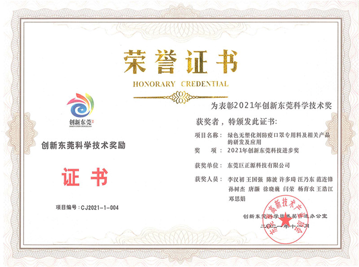 創(chuàng)新東莞科技進步獎一等獎