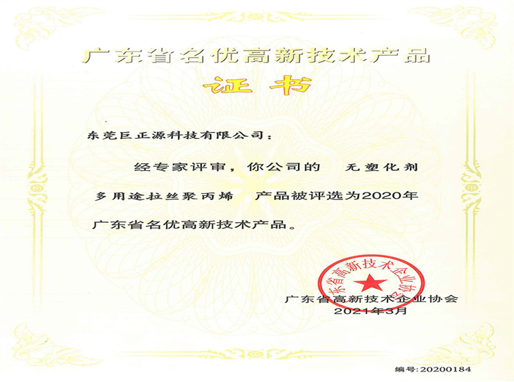廣東省名優(yōu)高新技術產品證書(拉絲料)