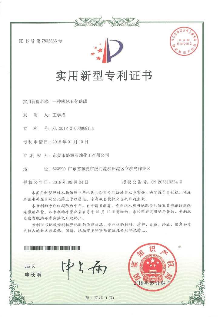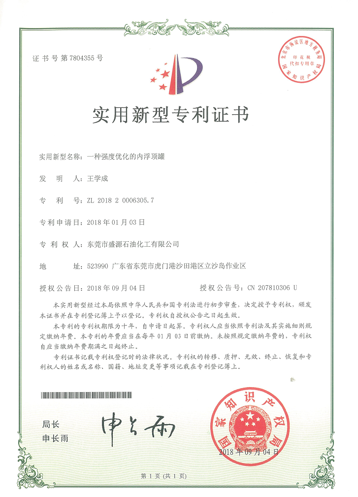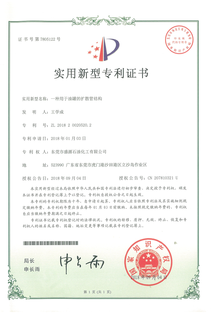 實用新型擴(kuò)散管結(jié)構(gòu)專利證書