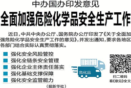近日,中共中央辦公廳、國務(wù)院辦公廳印發(fā)了《關(guān)于全面加強危險化學(xué)品安全生產(chǎn)工作的意見》,并發(fā)出通知,要求各地區(qū)各部門結(jié)合實際認真貫徹落實。