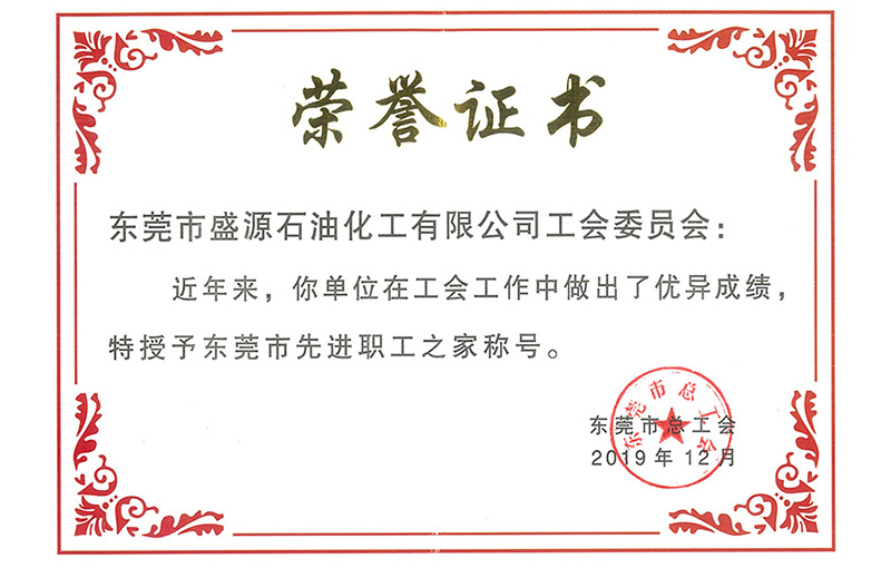日前,在由東莞市總工會發(fā)起的“職工之家”的評比活動中,盛源石化工會榮獲“東莞市先進職工之家”稱號。