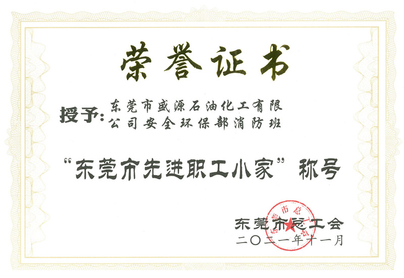 近日,巨正源所屬盛源石化公司安全環(huán)保部消防班被東莞市總工會(huì)授予“東莞市先進(jìn)職工小家”榮譽(yù)稱號(hào)。